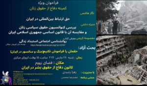 کمیته دفاع از حقوق زنان برگزار میکند از شما فعالین حقوق بشر، آگاهان و همکاران گرامی دعوت میشود تا ما را در این جلسهی سخنرانی همراهی فرمائید. سخنرانی، پرسش و پاسخ، بحث و گفتگو سخنرانان و موضوع سخنرانی شهرزاد حق وردی گزارش و تحلیل موارد نقض حقوق زنان در مهر ماه ۱۴۰۴ ملیحه شش پری …
