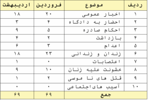 گزارش نقض حقوق زنان در اردیبهشت ماه ۱۴۰۴