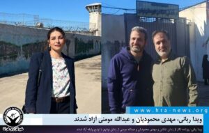 ۲۸ بهمن ۱۴۰۴-هرانا خبرگزاری هرانا – امروز سهشنبه ۲۸ بهمن ماه، ویدا ربانی، روزنامه نگار از زندان تنکابن، مهدی محمودیان و عبدالله مومنی از زندان نوشهر با تودیع وثیقه آزاد شدند.