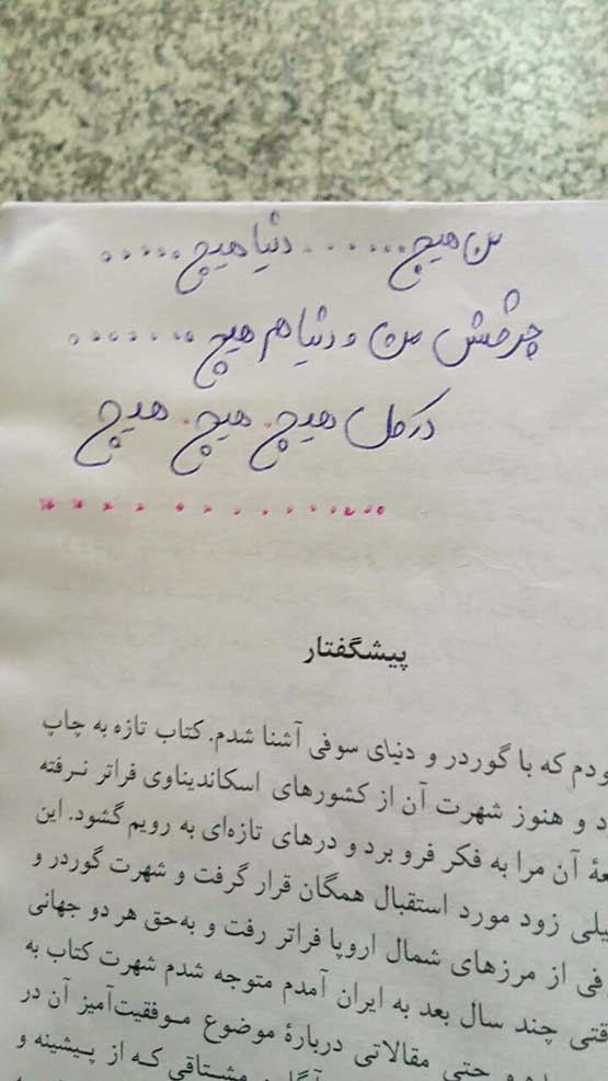 سعید تصریح کرد: بعد از خودکشی دخترم کتاب را مطالعه کردم و متوجه حاشیهنویسیهای آن شدم. دخترم با خواندن این کتاب هر روز از زندگی فاصله گرفته و به مرگ بیشتر نزدیک میشد. حالا از مدیر و معلم مدرسه به اتهام تدریس این کتاب و مخفی کردن خبر مرگ دخترم از همکلاسیهای خود، شکایت دارم.