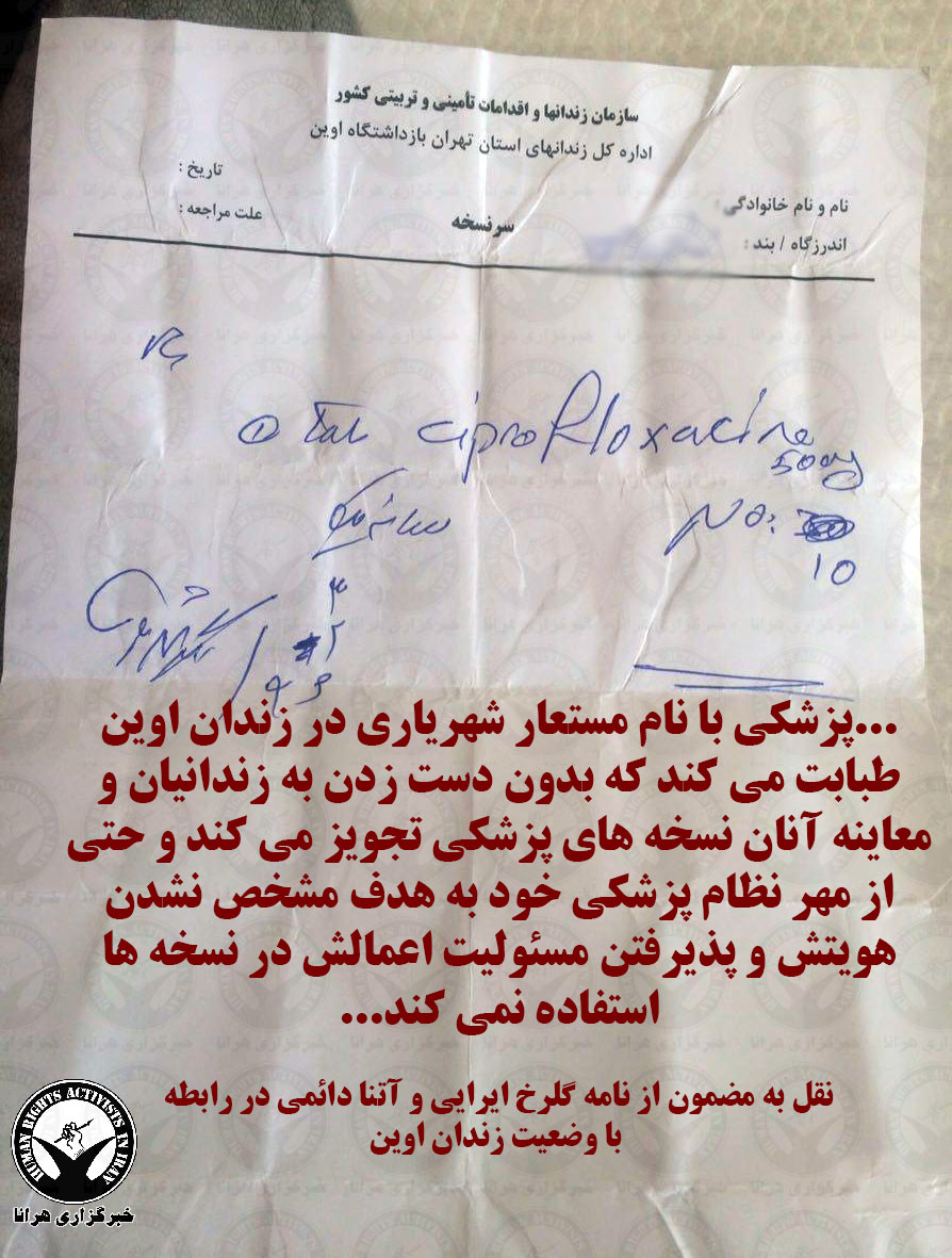 آیا میدانید چند زندانى مبتلا به ایدز و هپاتیت همراه با زندانیان دیگر گذران حبس مى کنند؟ آیا به شما گفته اند که برای زنان زندانی در این زندان به دلیل معذوریت شرعی معاینه توسط پزشک مرد، تزریق دارو و تست نوار قلب انجام نمی شود؟ آیا گفتند که حتی یک پرستار زن برای انجام این اموز برای ما زنان در این زندان وجود ندارد؟ آیا می دانید چند صد یا هزار نفر زندانی به دلیل آشامیدن آب ناسالم زندان از بیماری کلیوی رنج میبرند؟ آیا شما را با پزشکی با نام مستعار شهریاری آشنا کردند؟ پزشکی که بدون معاینه و تنها از طریق نگاه پی به بیماری زندانی میبرد و هرگز به دلیل ترس از عواقب تشخیص ها و تجویزهای اشتباهش و به دلیل جلوگیری از افشای هویت حقیقی اش، مهری که گویای هویت وی است بر نسخه هایش دیده نمی شود. کاش در حین بازدید از زندان سوار بر آمبولانس بهداری اوین نیز می شدید و از فقدان امکانات لازم در آن دیدن مى کردید. کاش از میزبانتان میخواستید که فیلمهای مربوط به ٢روز قبل از حضورتان در زندان را که از طریق دوربین های زندان ضبط شده است، برایتان پخش کنند تا ببینید وضعیت زندان و بهداشتش را، تا ببینید لباس های فرم زندانیان را که در داخل زندان به رنگ زرد و خارج از آن به رنگ آبی راه راه است، تا ببینید درهایی که پشت سر هم به روی زندانیان و حتی زندانبانهای هر شیفت توسط سربازان پلمپ و قفل مى شود و ببینید که حتی برای خروج فوری و انتقال بیمار با وضعیت اورژانس به بیمارستان باید منتظر باز شدن و فٓک پلمپ چند درب ماند.