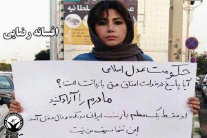 افسانه رضایی در تاریخ ۱۲ مردادماه در پی بازداشت مادر خود در خلال اعتراضات سراسری مردادماه در شیراز، با در دست گرفتن پلاکاردی نسبت به این بازداشت اعتراض کرد. خانم رضایی در پی این اعتراض توسط نیروهای امنیتی بازداشت و مدتی بعد به شش ماه حبس تعزیری محکوم شده بود.