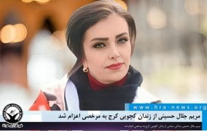 به گزارش خبرگزاری هرانا، ارگان خبری مجموعه فعالان حقوق بشر در ایران، مریم جلال حسینی از زندان کچویی کرج به مرخصی اعزام شد. براساس اطلاعات دریافتی هرانا، خانم جلال حسینی با تودیع وثیقه یک میلیارد تومانی به مدت ۱۵ روز به مرخصی اعزام شده است.