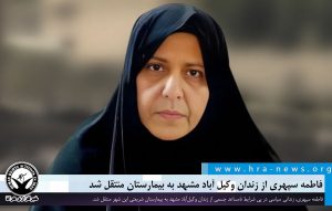 به گزارش خبرگزاری هرانا، ارگان خبری مجموعه فعالان حقوق بشر در ایران، فاطمه سپهری از زندان وکیلآباد مشهد به بیمارستان منتقل شد. علی سپهری، برادر فاطمه سپهری اعلام کرد که خواهرش روز چهارشنبه ۲۴ اردیبهشت ماه، به بیمارستان شریعتی منتقل شده است. به گفته او، این انتقال در پی تپش شدید قلب، درد قفسه سینه و افت فشار خون خانم سپهری صورت گرفته است.