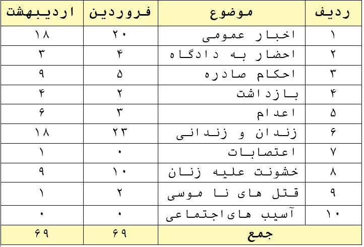 این گزارشات آماری از میان بیش از ۶۹ خبر که در طول اردیبهشت ماه ۱۴۰۴ تهیه شده است.
