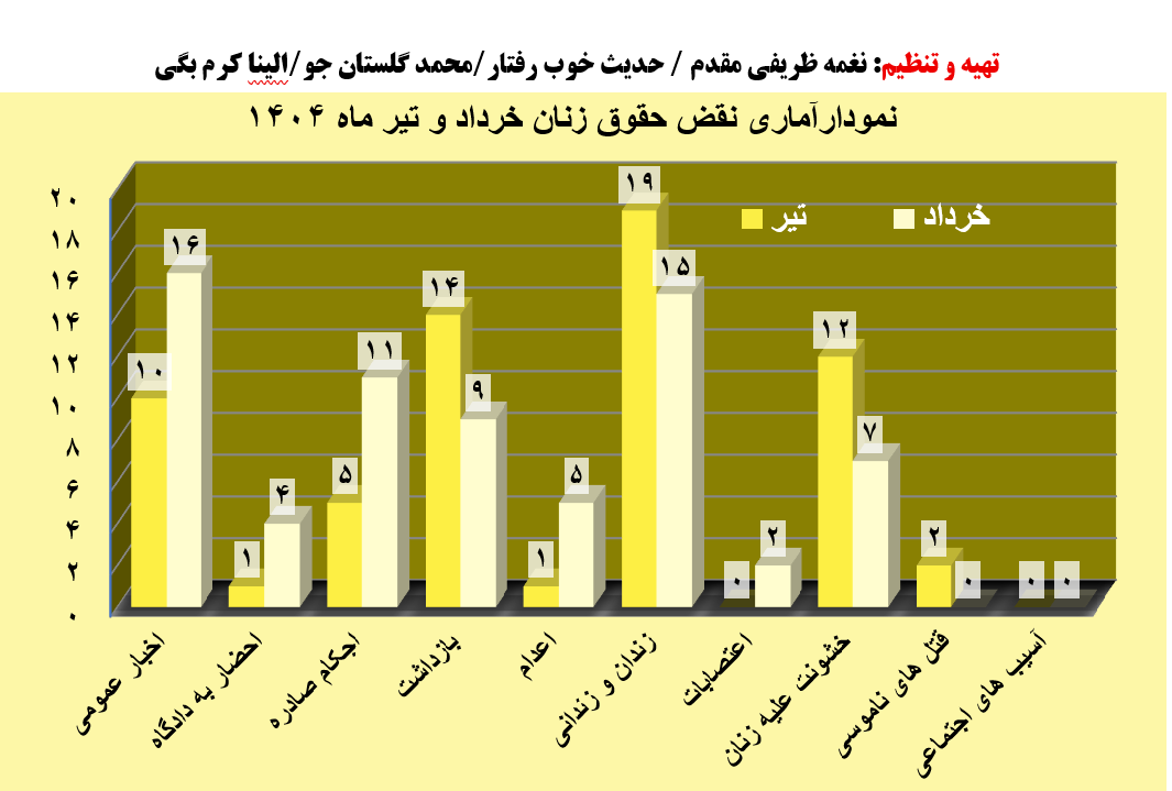 این گزارشات آماری از میان بیش از ۶۴ خبر که در طول تیر ماه ۱۴۰۴ تهیه شده است.