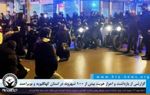 روز گذشته نیز هرانا در گزارشی از بازداشت دستکم ۲۳ شهروند در گچساران، دهدشت و یاسوج با هویت های علی بیژنی بناری، علیرضا مکی زاده بناری، محسن سبزی زاده بناری، سجاد نازمکانی، احمدرضا مدنی، علیرضا اویسی، محمدامین راستیزاده، محمد مختاری، یاشار شهبازی، آریا سبزپور، علیرضا رستمی، شهاب غلامیان، امید محمدی، احمد کرمی، علیحسن بهامین، حسن ایموری، مهرداد شعبانزاده، ابراهیم رخشان، ندا گرامی، یوسف رضایی، زهرا ایزدی نیا و فردین مسلمی و ماهان خوبانی خبر داده بود.