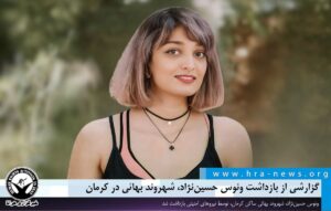 خبرگزاری هرانا – ونوس حسیننژاد، شهروند بهائی ساکن کرمان، ۱۰ روز پیش توسط نیروهای امنیتی بازداشت شده و تاکنون اطلاعی از محل نگهداری او کسب نشده است.