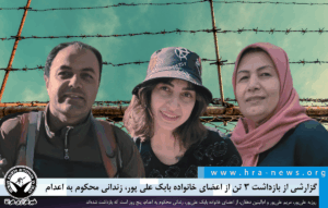 به گزارش خبرگزاری هرانا، ارگان خبری مجموعه فعالان حقوق بشر در ایران، سه تن از اعضای خانواده بابک علی پور زندانی محکوم به اعدام کماکان در بازداشت به سر میبرند. بر اساس اطلاعات دریافتی هرانا، در تاریخ ۶ بهمن ماه، روزبه و مریم علیپور، برادر و خواهر بابک علیپور، به همراه امالبنین دهقان، مادر وی، هنگام بازگشت از ملاقات او در زندان اوین بازداشت شدند. علیرغم گذشت پنج روز از زمان دستگیری، تاکنون اطلاعی از محل نگهداری و نهاد بازداشتکننده این افراد حاصل نشده است.
